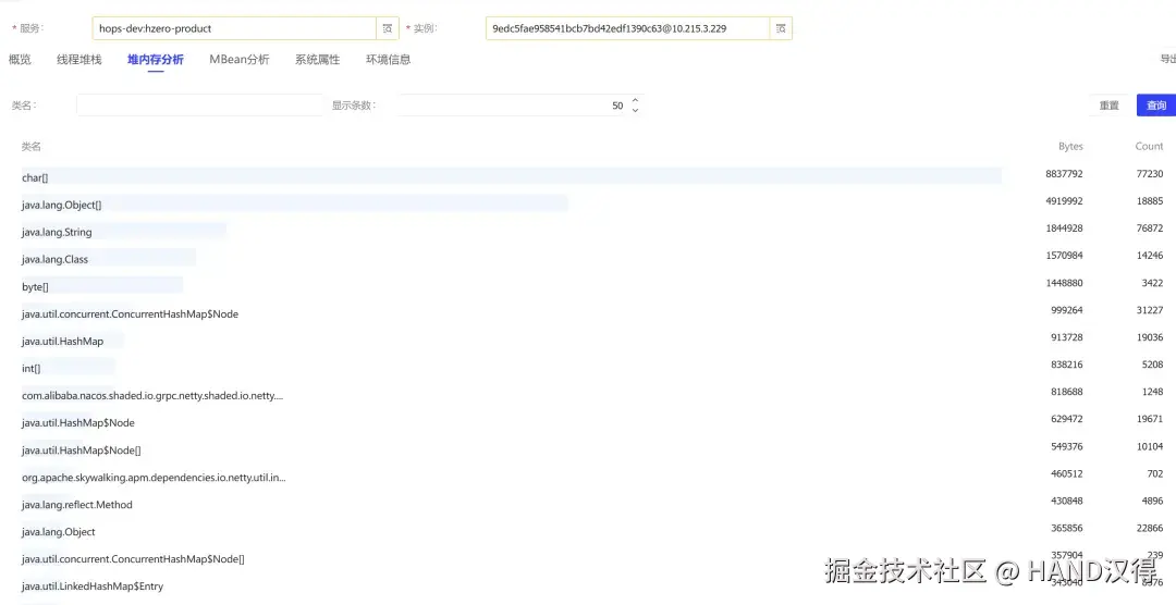 - 堆内存使用情况与对象分布