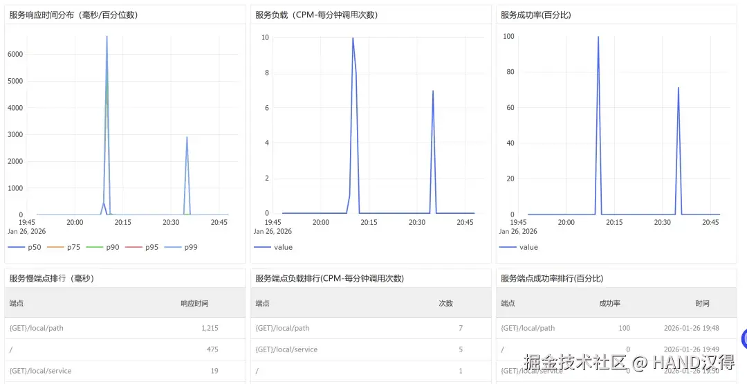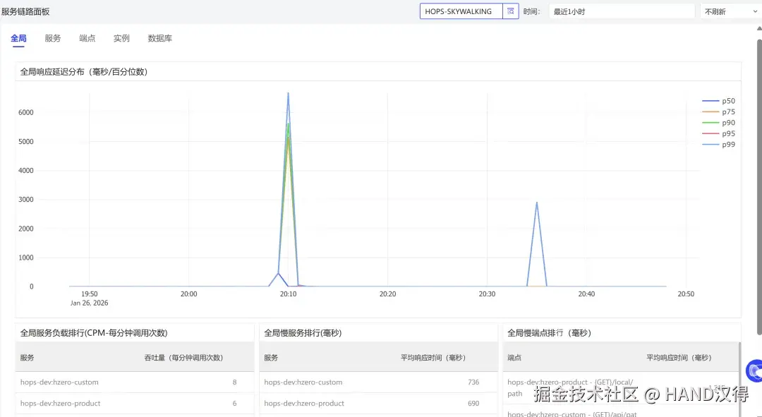 全局概览:掌握集群整体响应延迟分布、吞吐量排行、慢服务/慢端点排行等。