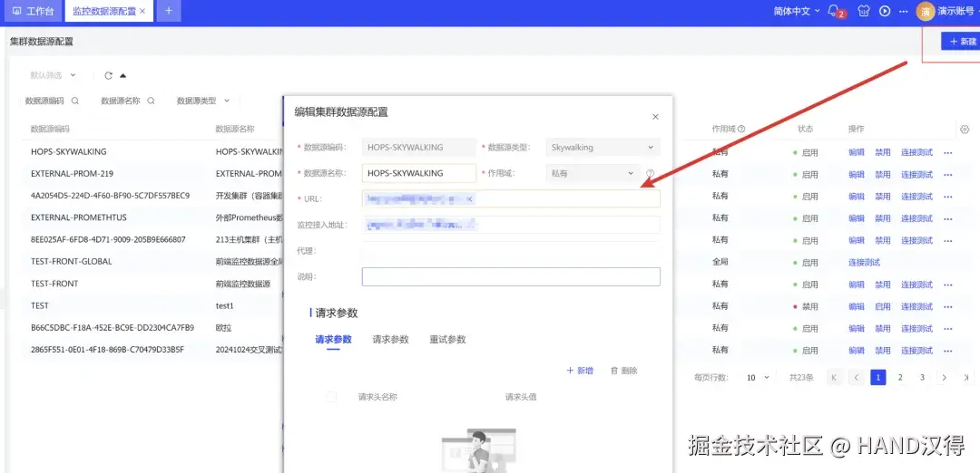 服务可观测性/监控数据源配置:新增Skywalking类型数据源。