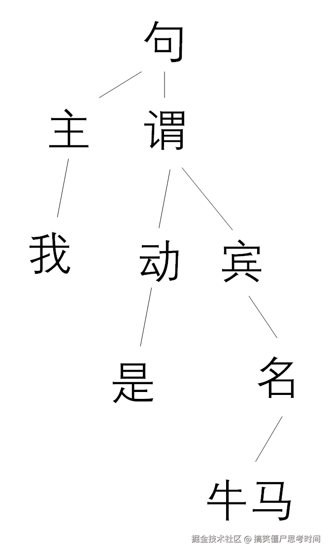 师傅您看,就拿“我是牛马”这么个句子来看,你要做成分分析,你得知道“牛马”是一个名词,充当宾语,这才好和前面的动词“是”结合为谓语,接下来才能构成出主谓结构,进而生成一棵完整的树。