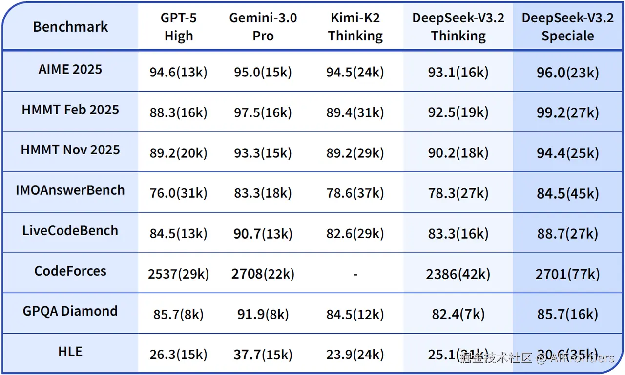 DeepSeek-V3.2-Speciale: 一个专为极高难度推理任务设计的版本,虽然成本较高,但在IMO 2025(国际数学奥林匹克)和IOI 2025(国际信息学奥林匹克)中均获得了金牌级表现,推理能力对标Gemini-3.0-Pro。