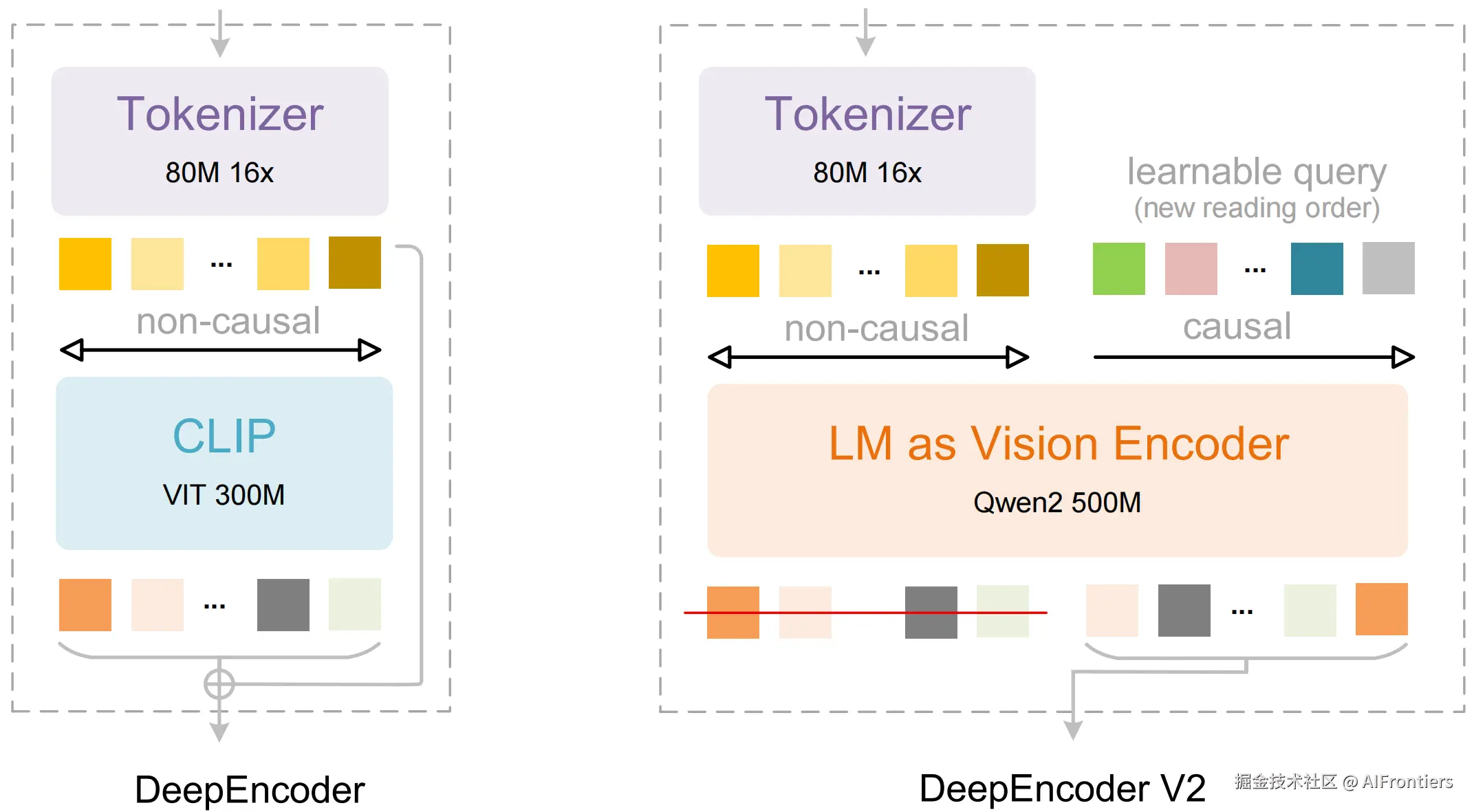 传统的视觉编码器(如ViT)通常将图像视为无序的补丁(Patches)集合。DeepSeek-OCR-2(3B参数)颠覆了这一范式,引入了视觉因果流概念。