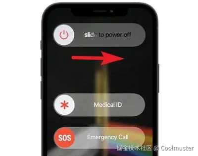 步骤2.滑动滑块关闭设备电源;短暂暂停后,再次按住“电源”按钮将其重新打开。