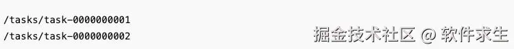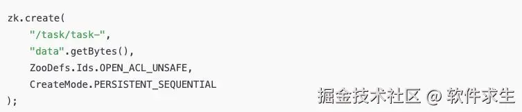 创建时,Zookeeper 会在节点名后面自动加一个递增数字。例如: