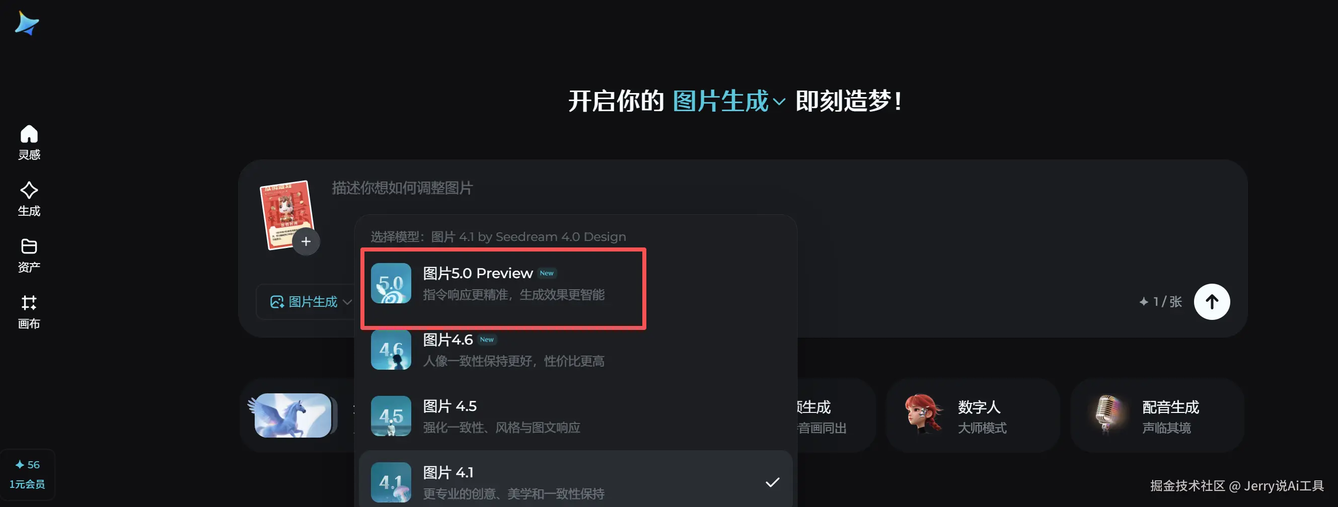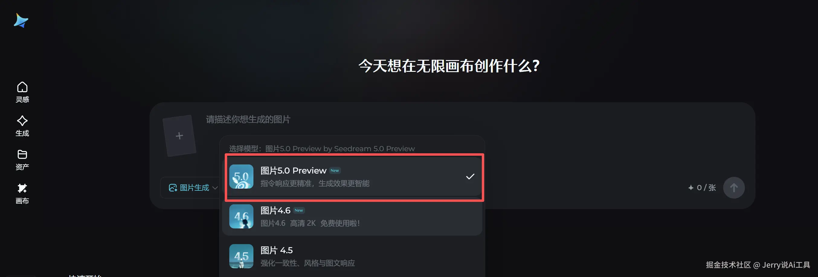 Step 1|选择图片生成 👉 选 Seedream 5.0-Preview