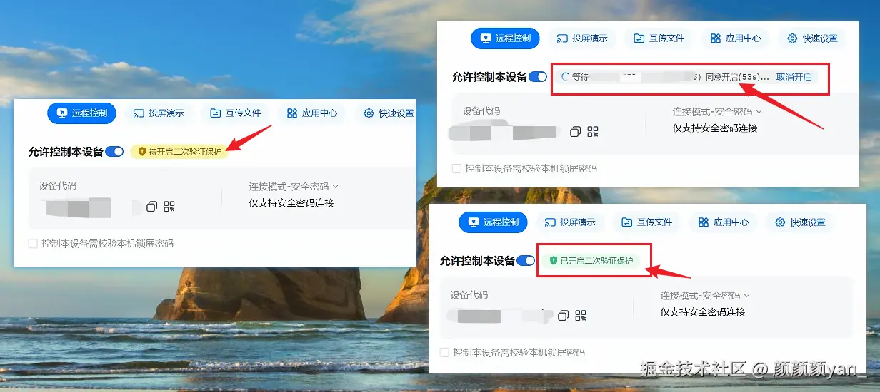 开启二次验证后,任何针对该设备的远程连接请求都需要通过账号主设备进行二次确认,有效防止未经授权的访问,为设备和数据安全提供更高等级的防护。