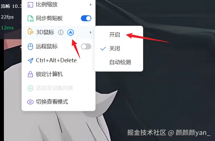 连接电脑后,右键可以设置3D鼠标和远程鼠标。