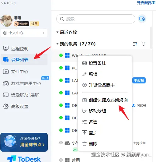 ToDesk 支持将常用远控设备创建为桌面快捷方式,无需每次打开软件查找设备,双击图标即可快速建立连接,大幅提升高频远控场景下的操作效率。