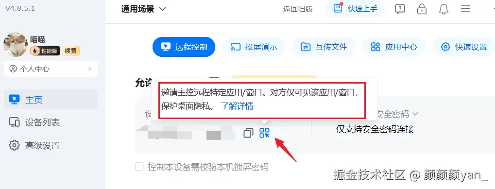 在隐私保护方面,ToDesk 推出被控邀请串流功能,被控端可主动选择主控设备,并指定应用或窗口进行远程共享,仅展示必要内容,有效避免无关信息泄露,让远程协作更加安全可控。