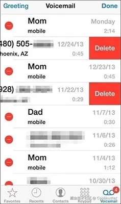 步骤4. 在要删除的语音邮件上向左滑动,然后点击“删除”将其删除。