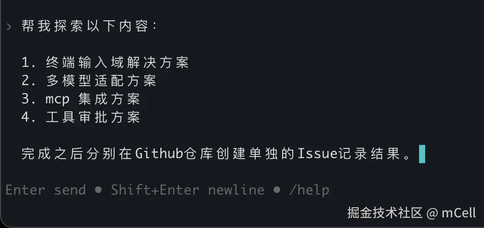 但在终端里,多行输入并不是默认就“应该支持”的体验。甚至 Ink 的 input 组件,也只有单行。