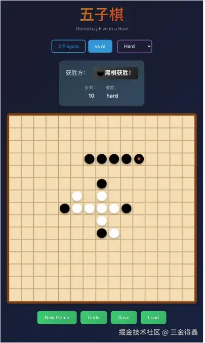 看 UI 和交互都很不错,唯一让人有点不满意的就是 AI 对战的算法还是有点弱(不过这也是因为最初设定原因)。