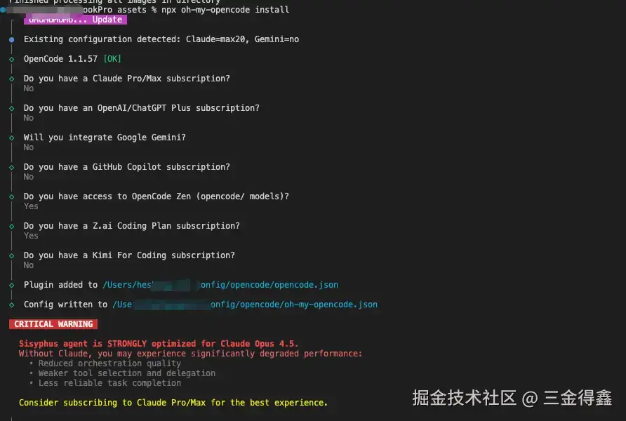 oh-my-opencode,比如使用npm install -g oh-my-opencode; - 然后再使用如下方式进行交互式配置