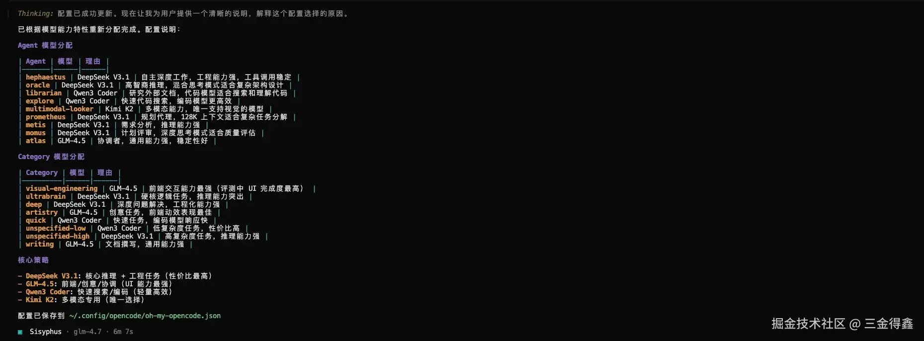 ~/.config/opencode/opencode.json文件中,这是 opencode 的配置文件; - 根据订阅配置分配代理模型,这个会在