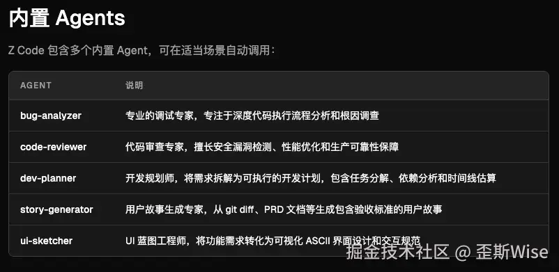 官方内置了5个Agent,会根据语义自动调用,也可以直接 @ 显式调用