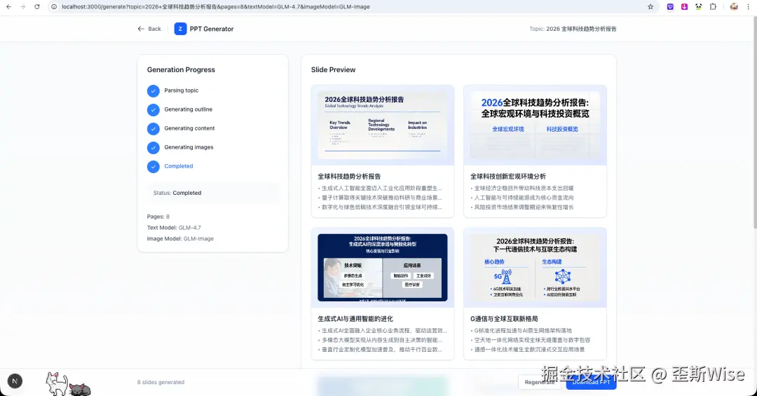 这是我用glm-5和z code最终生成的结果了。在输入第一段提示词的时候,建议朋友们把GLM图片生成的API文档也发进去,还有你自己的KEY,尽量一波输出。