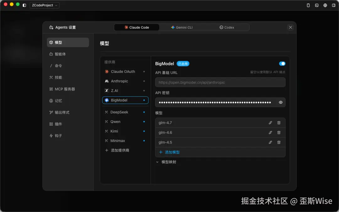 下载完之后,开局先配置模型,这里我们可以看到是支持Claude、Gemni、Codex三种CLI的。