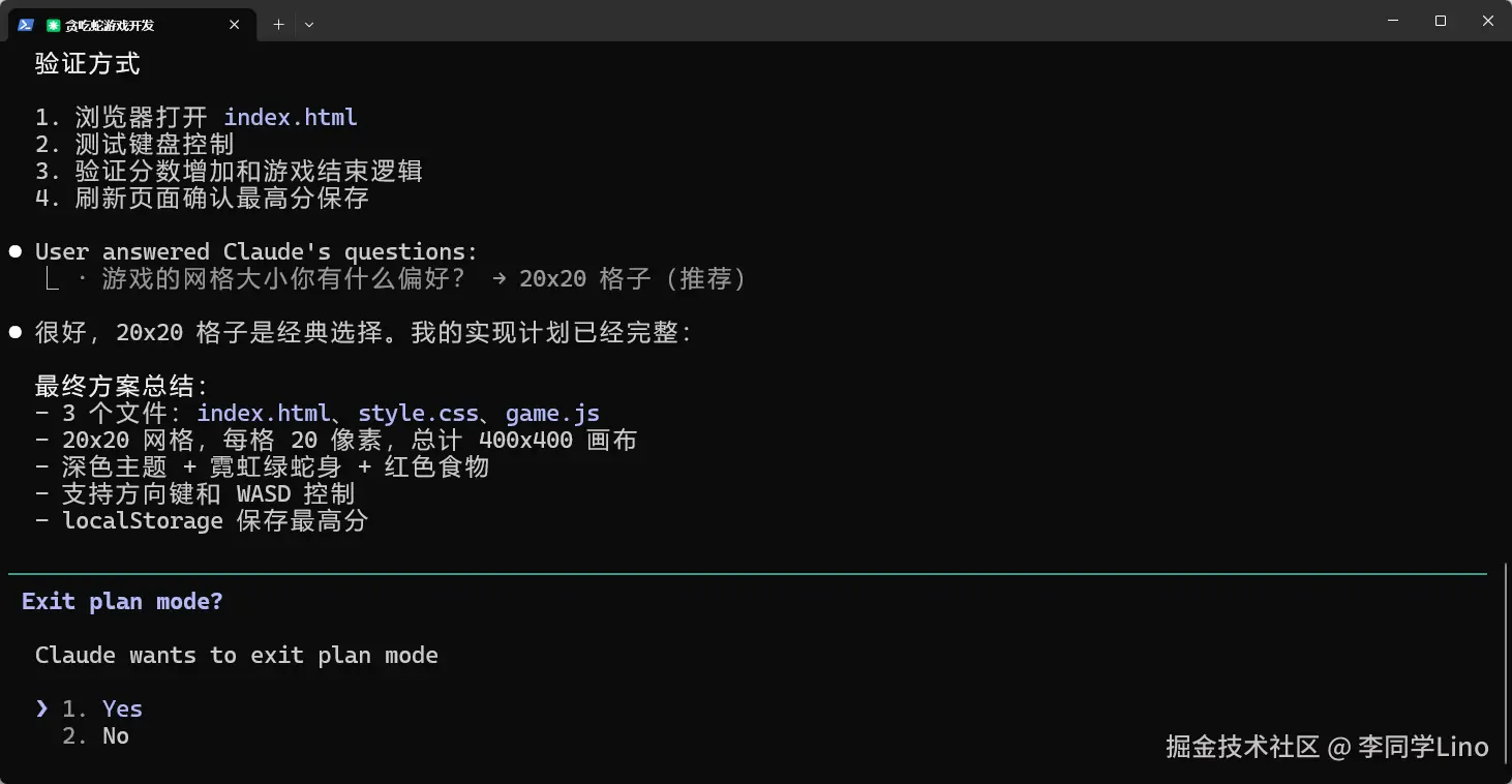 当你在屏幕上看到详细的 最终方案总结,并且 Claude 询问 Exit plan mode? 时,说明规划阶段完美结束。