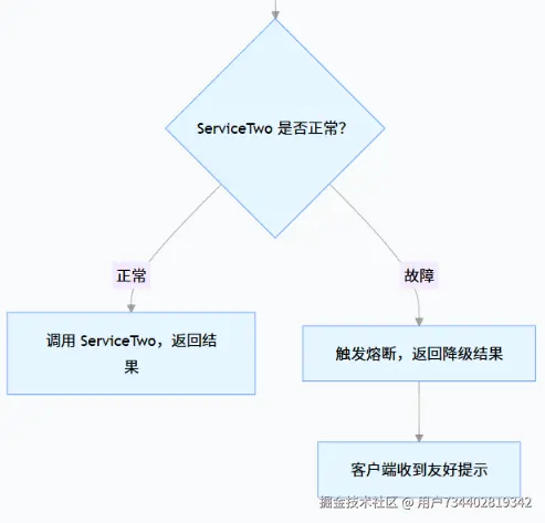 | 熔断 | 像家里的 “保险丝”—— 当电流过大(服务故障),保险丝自动断开,避免电路烧毁 | 暂时 “切断” 对故障服务的调用,防止故障扩散 | 餐厅某道菜的食材用完了,服务员直接告诉顾客 “这道菜暂时没有”,不往后厨下单 |