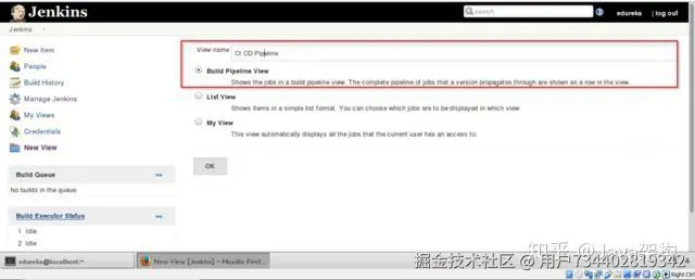 第 24 步:选择 “Build Pipeline View” 并填写视图的名称(如下以 CI CD Pipeline 为例)。