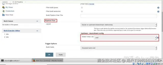 第 19 步:填写在 Job1 构建完成后需要执行的任务(如下示例中为 Job2),并点击 Save 按钮保存。