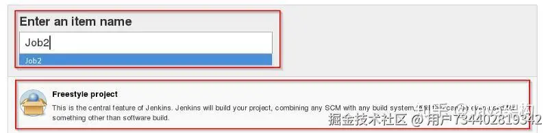 第 8 步:选择 “freestyle project” 并填写项目的名称(如下以 “Job2” 为例),并点击 OK 确认。