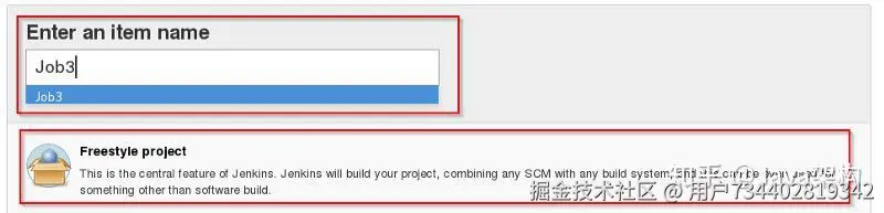 第 13 步:选择 “freestyle project” 并填写项目的名称(如下以 “Job3“ 为例),并点击 OK 确认。