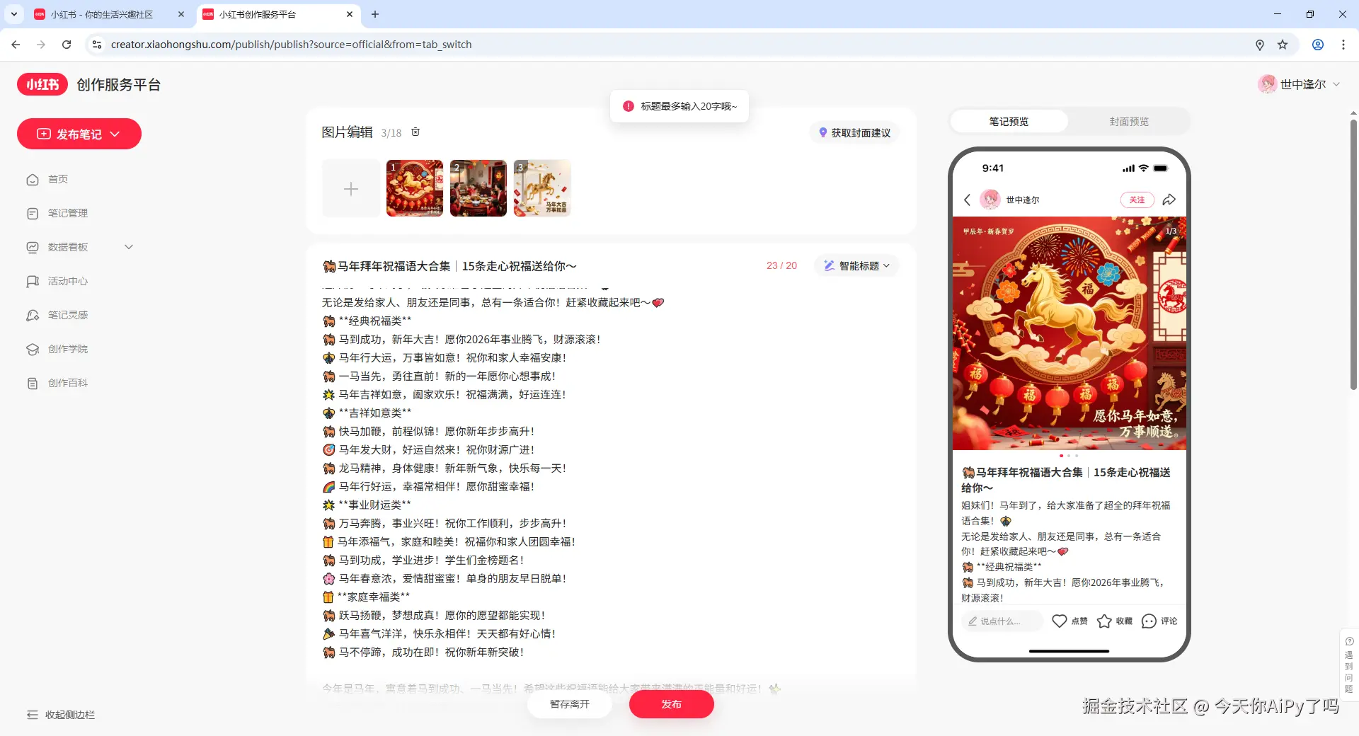 今天就给大家展示一下,如何用AiPy在短短几分钟内,从0到1生成并发布一篇高质量的小红书马年拜年笔记!