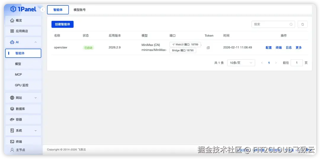 1Panel v2.1.0版本新增OpenClaw智能体管理功能。该功能支持对OpenClaw智能体进行集中化管理与使用,帮助用户在统一入口下完成相关配置与维护操作,降低多工具切换成本。对于希望在运维流程中引入AI能力的用户,该功能可以提供更为清晰的管理方式与更加顺畅的使用体验。