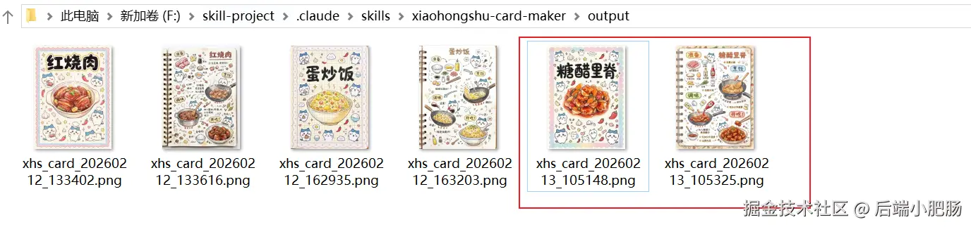 来到output文件夹可以看到糖醋里脊的制作手账图文已经存在。