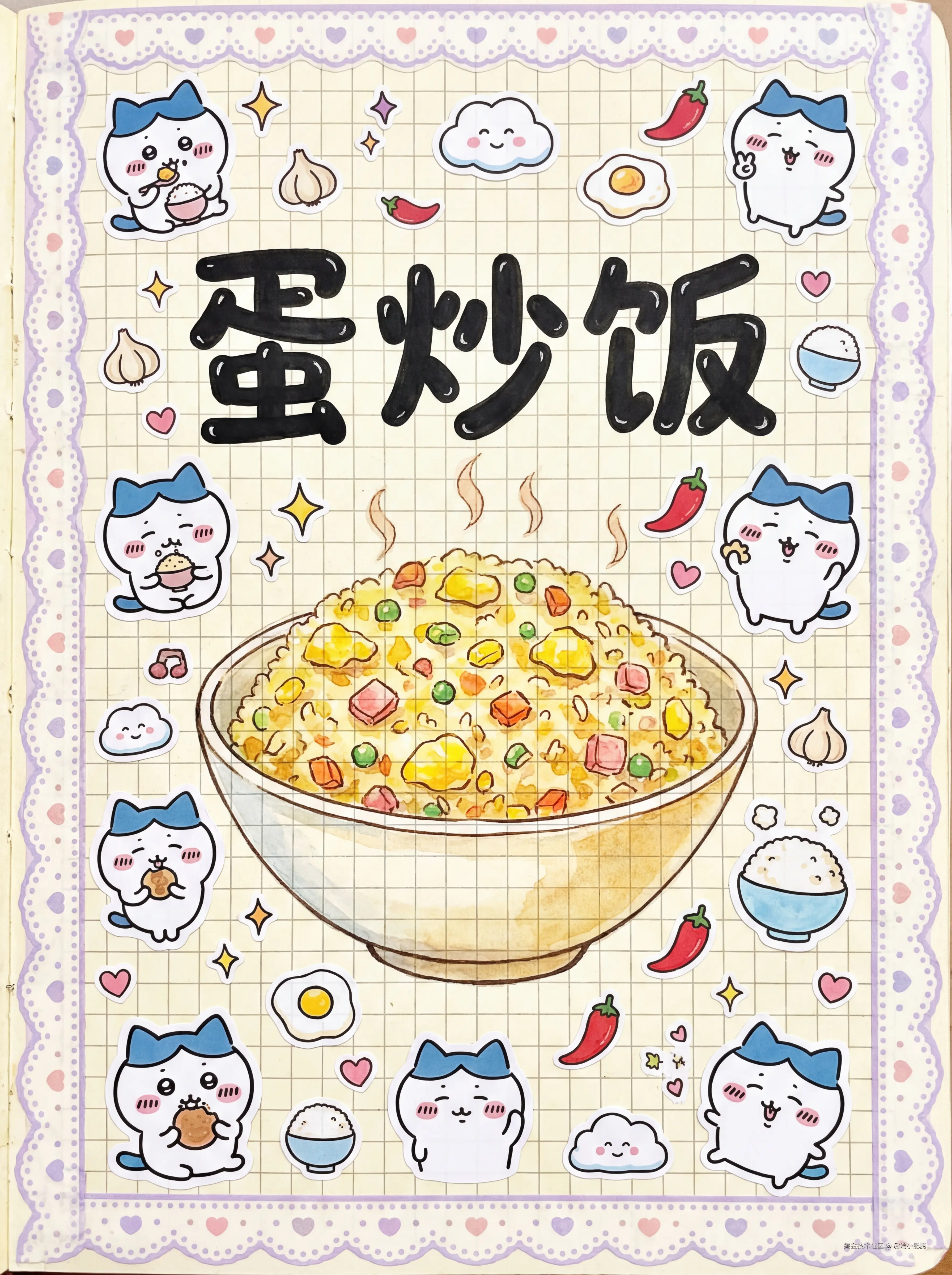 这篇文章教你用10分钟来搭建最近在小红书上很火的美食手账图文。仅需一个指令帮我生成制作蛋炒饭的小红书手账卡片。等待几分钟后美食手账卡片就会出现在本地目录下,你只需要简单配文就能发布到小红书/小绿书。