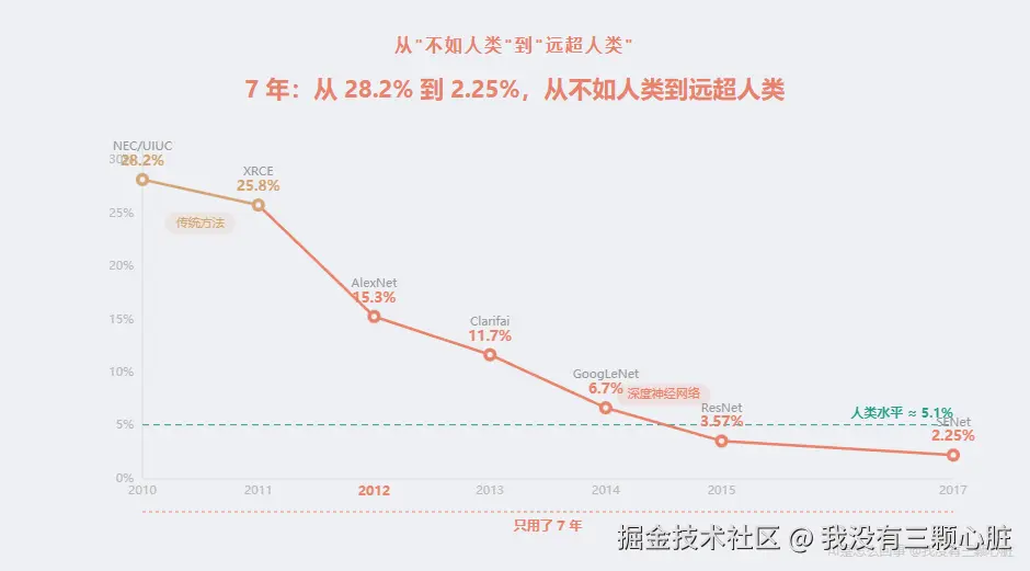 从 28.2%到 2.25%,从"勉强及格"到"远超人类",只用了 7 年。