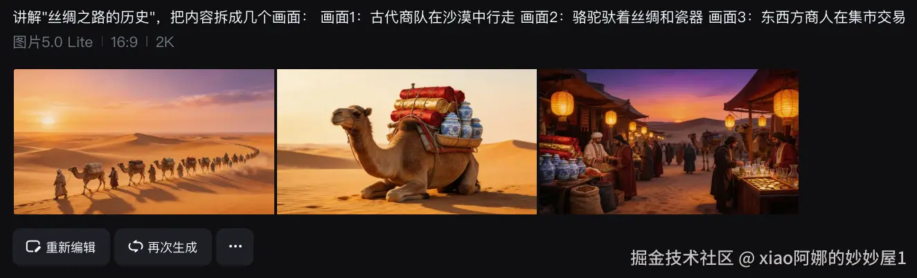 比如你要讲"丝绸之路的历史",把内容拆成几个画面: