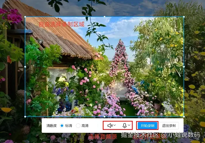 首先打开软件,结合自身录制需求挑选适配的录制模式,接着调整好录制区域的大小和位置,同时设置好音频源,确认无误后点击 【开始录制】 按钮启动录制;