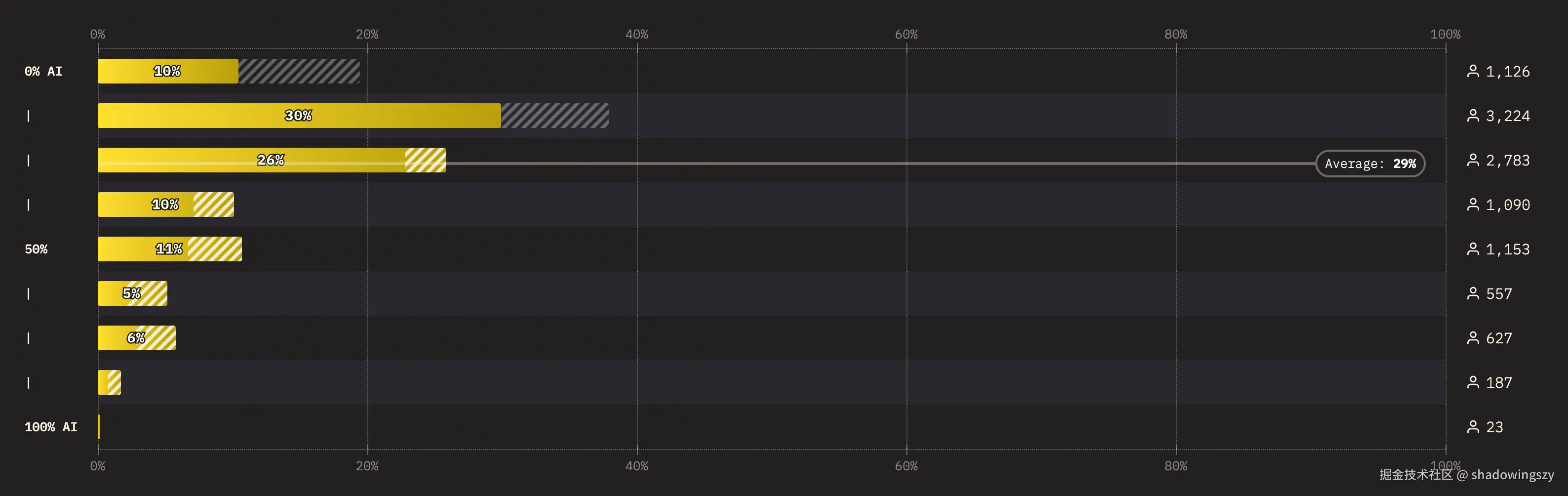 这张图刻画了 AI 在代码生成中的“真实渗透率”,结论很清晰: