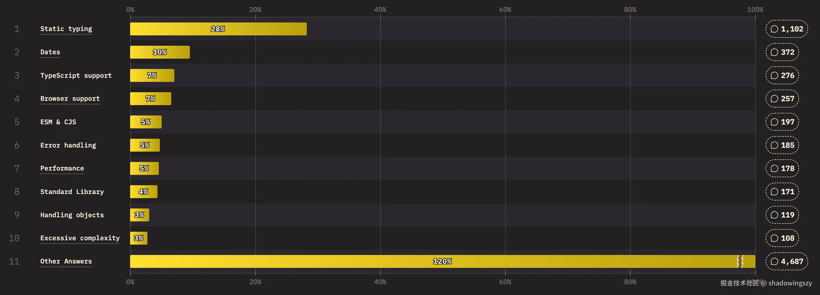 关于 JS 语言自身的痛点,今年的结果再次印证了社区共识: