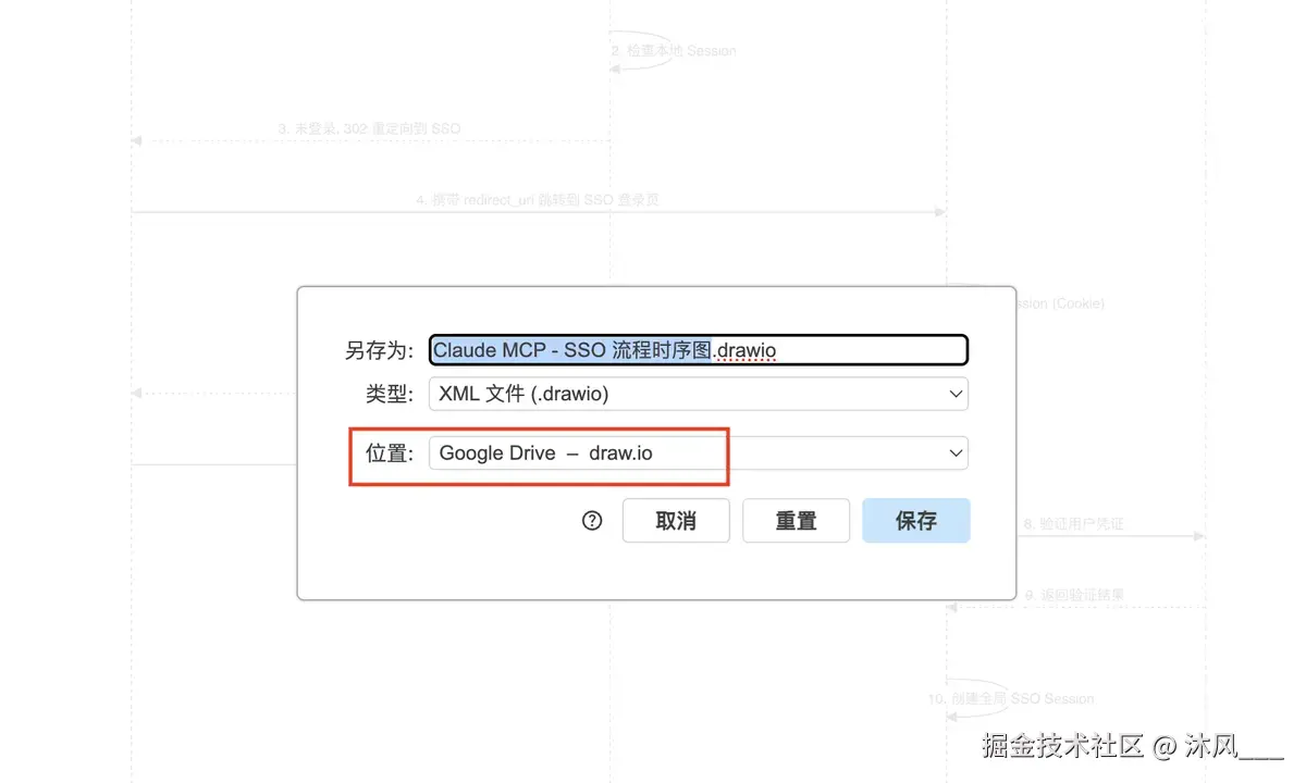 使用 draw.io MCP 工具 open_drawio_mermaid 制作展示 SSO 流程的时序图