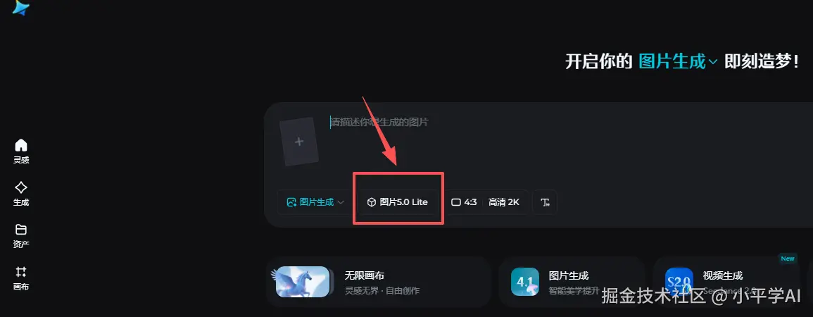 - 第一步:打开即梦AI,在模型选择中切换至 Seedream 5.0。