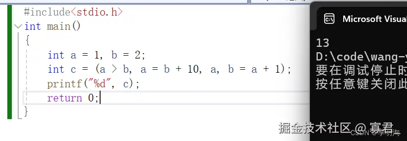 逗号表达式,就是用逗号隔开的多个表达式,从左到右依次执行,整个表达式的结果是最后一个表达式的结果。