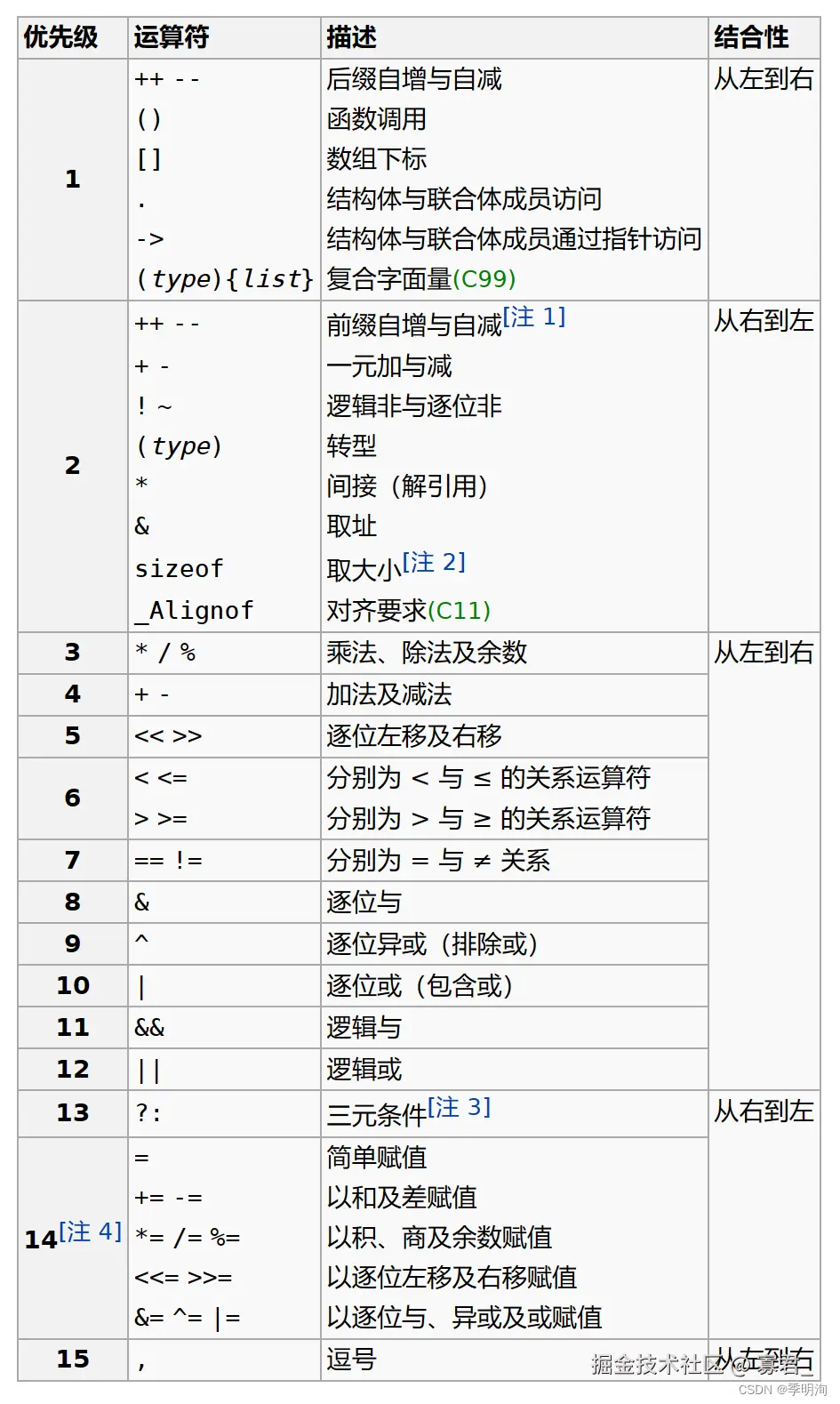 运算符的优先级顺序很多,下面是部分运算符的优先级顺序(按照优先级从⾼到低排列)。