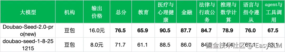 Doubao-Seed-2.0-pro版本表现: