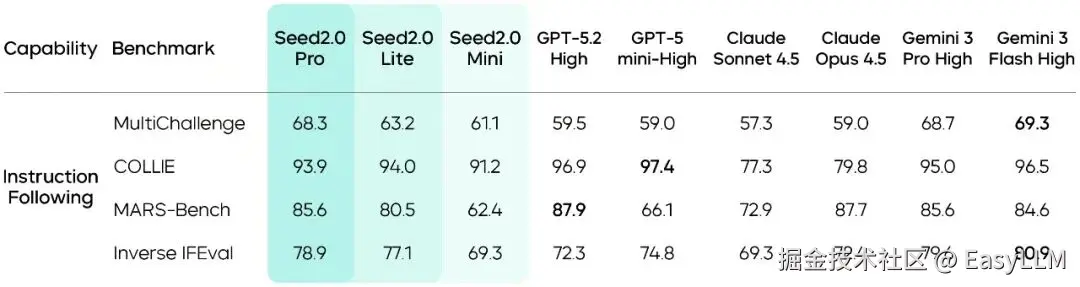 Seed2.0还重点强化了指令遵循能力。相关评测显示,Seed2.0可保持较强的一致性与可控性。