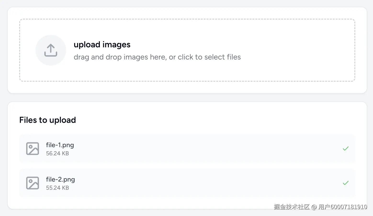 这个组件的核心逻辑是监听files状态的变化,一旦有新文件加入,useEffect钩子就会触发上传流程;当一个文件上传完成后,将isUploading置为false,又会触发另一次useEffect执行,进而处理队列中的下一张图片。