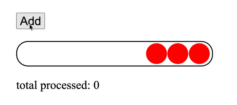 我们先从一个基础示例开始:实现一个队列,每隔 500 毫秒逐个处理队列中的圆点元素。