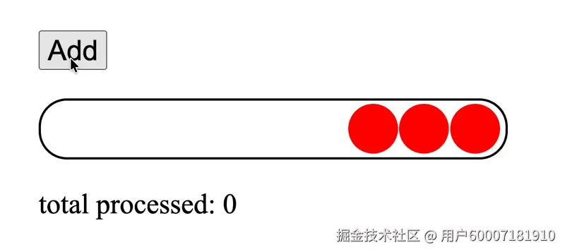 我们先从一个基础示例开始:实现一个队列,每隔 500 毫秒逐个处理队列中的圆点元素。