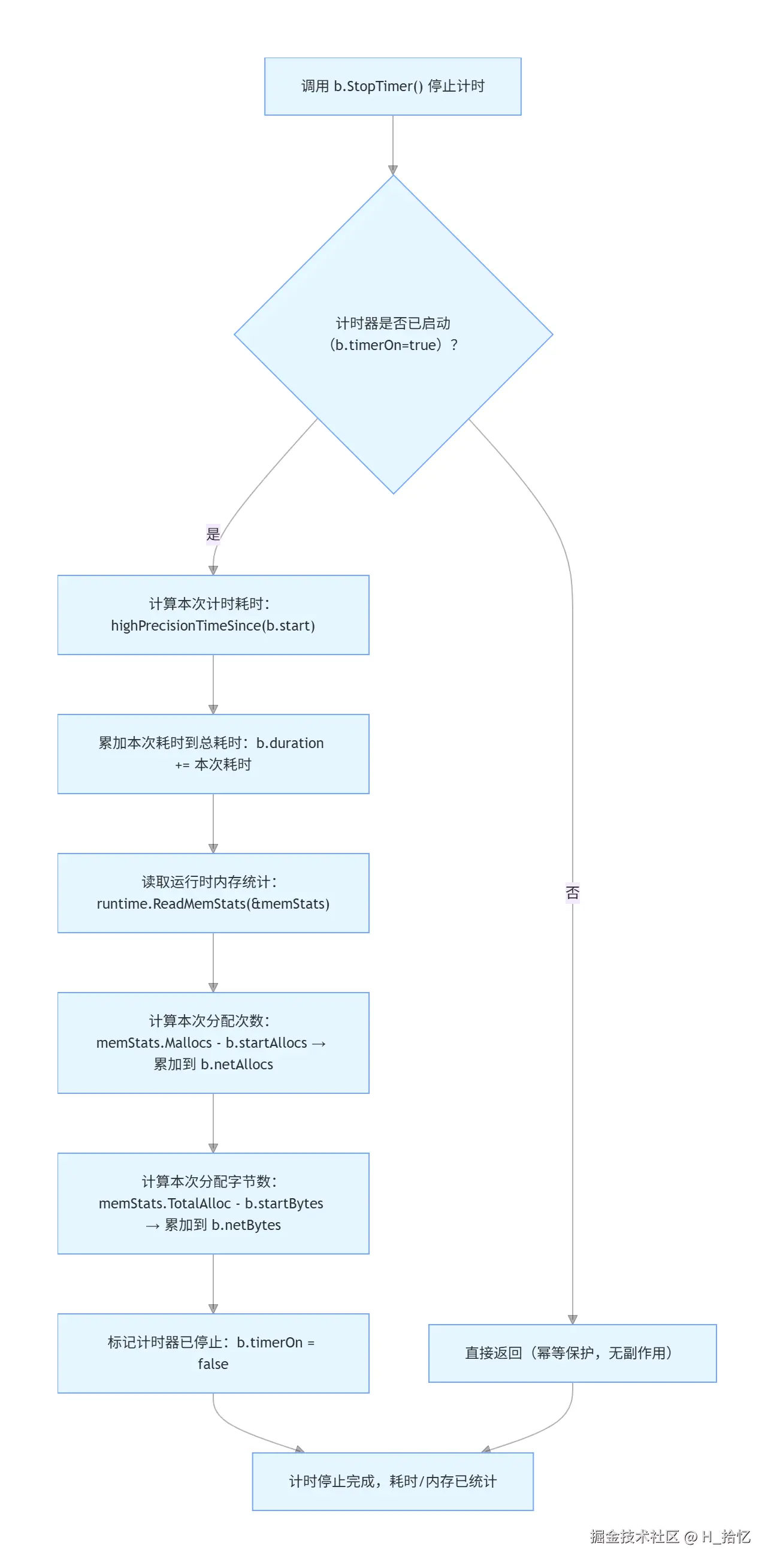需要注意的是.StopTimer()并不一定是测试结束.一个测试中有可能有多个统计阶