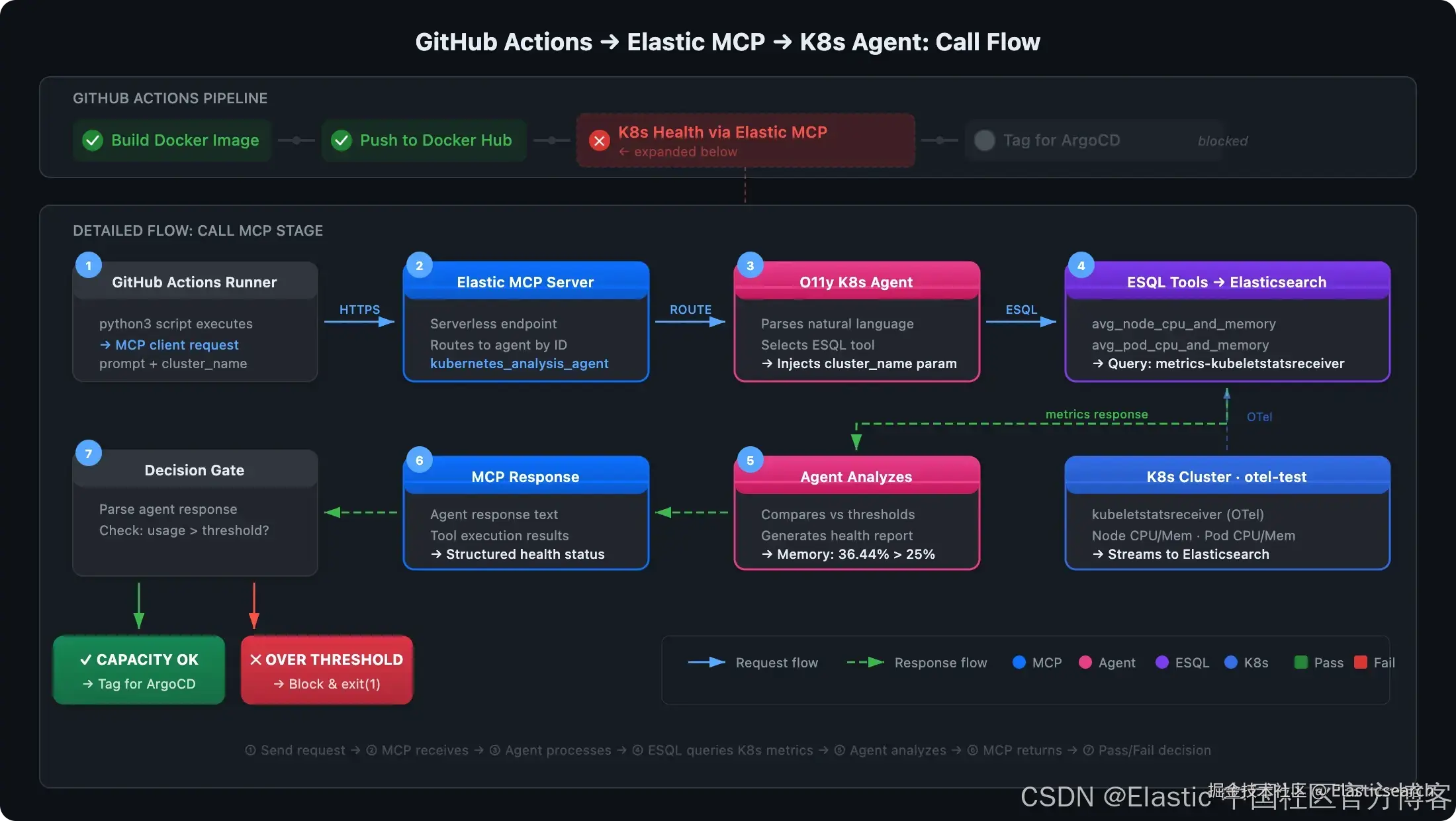 使用 Elastic MCP Server 部署 agentic CI/CD 门控。将 AI agents 集成到 GitHub Actions 中,通过 O11y 监控 K8s 健康状况,并提升部署可靠性。