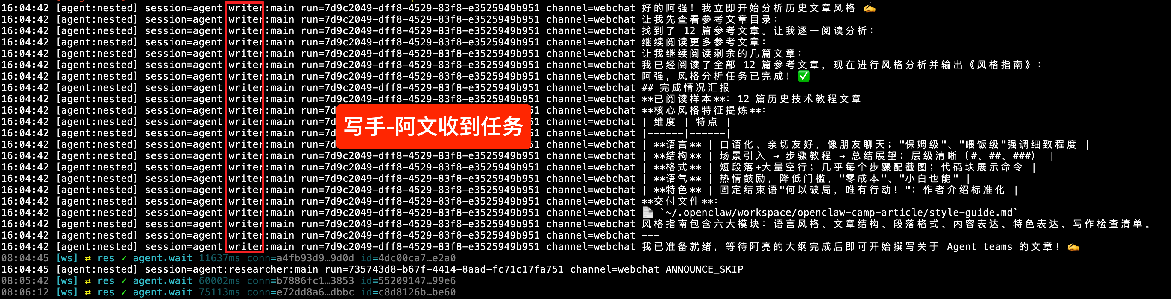 先是收到了阿强给的任务,先读取风格指南,等待阿亮的大纲。
