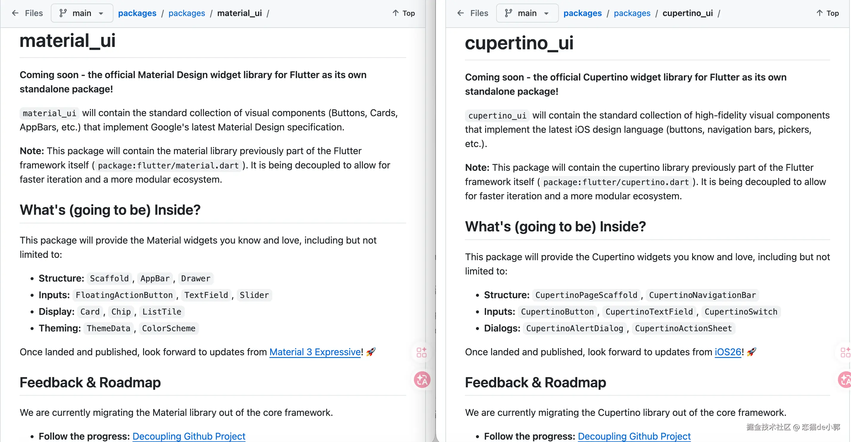 同时,最重要的是,这两个包都提及了 Material 3 Expressive 和 iOS 26 风格支持,也就是全新的样式适配,会跟随包一起发布。