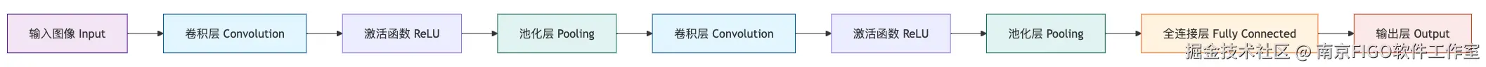 经典的 CNN 架构(如 LeNet, AlexNet, ResNet)通常是这样的“三明治”结构: